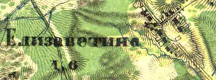 ЕЛИЗАВЕТИНО — деревня владельческая при озере Глубоком, число дворов — 16, число жителей: 38 м. п., 40 ж. п. (1862 год)[5]