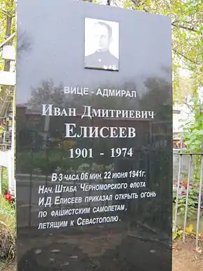 В 03:06 22.06.1941 начальник штаба Черноморского флота контр-адмирал И. Д. Елисеев приказал открыть огонь[8] по фашистским самолётам, которые вторглись далеко в воздушное пространство СССР[9], чем и вошёл в историю: это был самый первый боевой приказ дать отпор напавшим на Советский Союз фашистам в ходе Великой Отечественной войны[10][11].