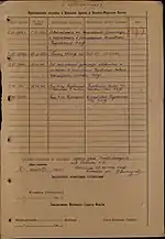 | 01.1921 | Старший переписчик, оперативный отдел штаба 8-й стрелковой дивизии, г. Бобруйск |