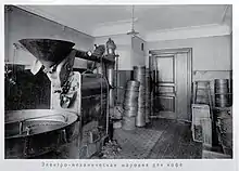 Отличительной особенностью магазина стало размещение при нём значительного числа собственных производств, среди которых было несколько небольших пекарен, кондитерский цех, цеха засолки, копчения, маслоотжима, обжарки кофе, колбасная фабрика, также непосредственно в подсобных (в основном — подвальных) помещениях магазина разливались вина и напитки, изготовлялись варенья и мармелады[8]; продукты собственного производства составляли значительную часть ассортимента гастронома[8]. Значительные площади в подвальной части занимал винный погреб, также в здании была размещена собственная мастерская[10].