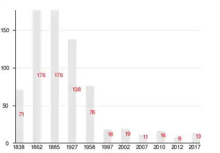 | 1838 | 1862 | 1885 | 1997 | 2007[23] | 2010[24] | 2012[25] |