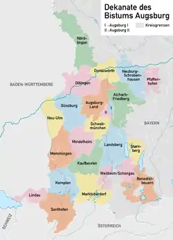1 апреля 1818 года в состав епархии Аугсбурга вошла часть территории упраздненной епархии Констанца.