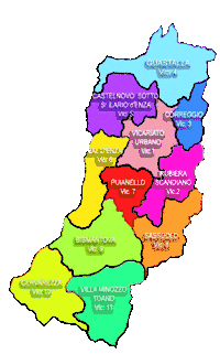 Епархия разделена 318 приходов, объединённых в 11 викариатств: Реджо-нель-Эмилия, Рубьера—Скандиано, Корреджо, Гвасталла, Кастельново-ди-Сотто—Сант-Иларио-д’Энца, Валь-д’Энца, Пуйанелло, Сассуоло, Пьетра-ди-Бизмантова, Черварецца и Вилла-Миноццо—Тоано.