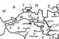 В XII в., епископство Вормс, хотя и зажатое между Шпайером, Майнцем и набиравшим силу Курпфальцем, всё ещё обладало значительной экономической силой, и подразделялось на 4 архидиаконата, которыми управляли пробсты. Администрация лежащей на левом берегу Рейна части епископства была разделена между соборным пробстом, который имел власть также непосредственно в Вормсе, и пробстом церкви св. Павла в Вормсе; пробсту церкви св. Кириака в Нойхаузене (сегодня — один из райнов Вормса) было подчинено Лобденгау (севернее реки Неккар); пробст церкви св. Петра в Вимпфене управлял землями южнее Неккара (Эльзенцгау и Гартахгау).