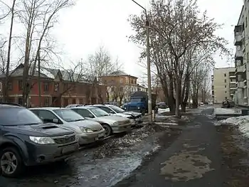 Застройка улицы в основном представлена старыми брусковыми и кирпичными жилыми дома. Присутствует частный сектор, представленный домами 1949 года постройки.