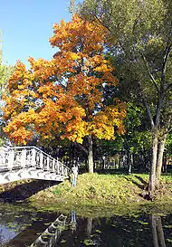 В парке сохранились аллеи с вековыми липами и пруд с несколькими островками, между которыми перекинуты мостики. Также уцелели один из флигелей и павильон в парке