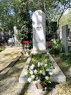 Олег Ефремов похоронен на Новодевичьем кладбище Москвы, рядом с могилой Константина Станиславского[97][98].