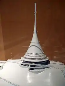Высота сооружения составляет почти 100 метров, основание его располагается на круге диаметром 33 метра. Автором проекта и архитектором является Карел Губачек, со статическими расчётами помогал Зденек Патрман, а решением внутренних помещений занимался Отакар Бинар[3].