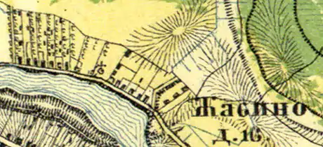 На карте Санкт-Петербургской губернии Ф. Ф. Шуберта 1834 года, также обозначена деревня Жабино[8].