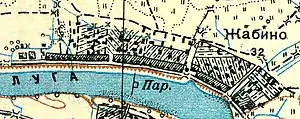 ЖАБИНО — деревня владельческая при реке Луге, число дворов — 18, число жителей: 63 м. п., 56 ж. п.; Часовня. (1862 год)[14]