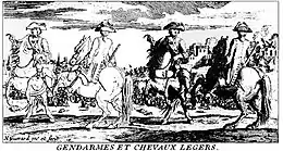 Жандарме́рия (фр. gendarmerie) — разновидность тяжёлой кавалерии (изначально лейб-гвардия). До Тридцатилетней войны по наличию полных рыцарских доспехов являлись тяжелее кирасиров. Затем элитная тяжёлая кавалерия в полных рыцарских доспехах, тяжелее кирасиров, носивших вместо полного доспеха так называемый «доспех в 3/4». С облегчением доспеха превратились в элитную разновидность кирасиров. Впоследствии этим словом была названа разновидность полиции — Национальная жандармерия Франции.