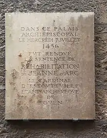 После окончания войны в Нормандии в 1452 году Карл VII велел собрать все документы, относящиеся к процессу над Жанной, и предпринять расследование его законности. Следствие изучило документы процесса, опросило оставшихся в живых свидетелей и единодушно пришло к выводу о том, что в ходе процесса над Жанной допускались грубейшие нарушения закона. В 1455 году папа Каликст III повелел провести новый процесс и назначил трёх своих представителей для наблюдения над ним, в том числе архиепископа Реймса Жана Жувенеля дез Юрсена в качестве председателя[16].