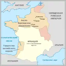 В 1420 году был подписан договор в Труа, согласно которому дофин Карл объявлялся лишённым прав на корону. Королём после смерти Карла VI должен был стать Генрих V Английский, обручённый с французской принцессой Екатериной, а за ним — его сын, рождённый от этого брака. Это был смертный приговор независимости Франции. В 1422 году Генрих V внезапно умер, и королём обоих государств стал его девятимесячный сын Генрих VI. Регентом при малолетнем короле стал английский герцог Бедфорд.
