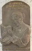 Мемориальная доска Жарковой Л. М. Находится внутри здания Российской государственной детской библиотеки.
