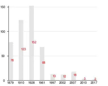 Число жителей по семейным спискам 1879 г.: 40 м. п., 38 ж. п.; по приходским сведениям 1879 г.: 34 м. п., 37 ж. п[3].