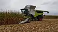 Шнек и наклонный транспортёр транспортируют срезанную массу к комбайну[1].