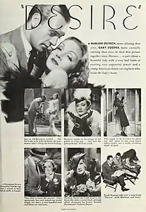 За фильм «Желание» режиссёра Фрэнка Борзейги, снятого на основе сценария Эрнста Любича, мне никогда не придется стыдиться. Я нашла Гэри Купера немного, односложнее, чем прежде. Он, наконец, избавиться от Лупе Велес, которая постоянно следовала за ним по пятам на протяжении всей съемки фильма «Марокко».