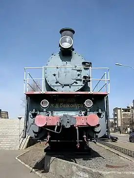 В полувековой юбилей космодрома у станции «Городской», в центре города Байконура, был установлен памятник – паровоз Эу709-81, изготовленный на Луганском заводе в 1930 году[2]. Именно паровозы такого типа были задействованы в проведении первых строительных работ на космодроме и обеспечении пусков первых ракет.