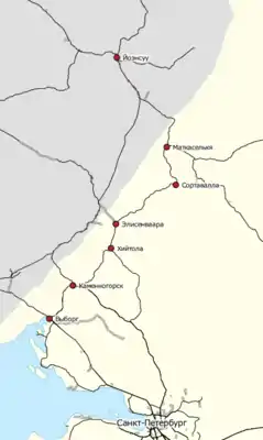 - Линия от Хийтолы на юг, до Санкт-Петербурга