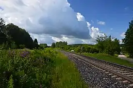 ![]() Железная дорога на остановочном пункте Тыравере близ одноимённой деревни (2016 год) | |