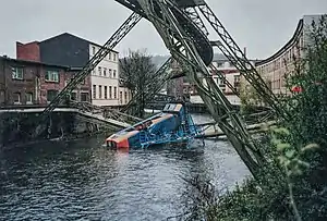 Железнодорожная катастрофа в Вуппертале — крупная железнодорожная катастрофа подвесной железной дороги в Вуппертале. Во время следования поезд наскочил колёсами на забытые строительные когти, после чего сорвался с пути и упал в реку. 5 человек погибли, 47 — пострадали[1]. Впоследствии на месте трагедии была поставлена памятная табличка.