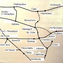 - Прохождение железнодорожной линии по муниципальным образованиям отображено на схеме границ поселений Весьегонского района — приложении к Закону Тверской области от 28.02.2005 о границах и статусе муниципальных образований в составе Весьегонского района Тверской области