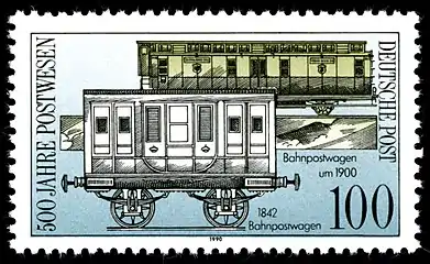 Впервые специальный закон о железнодорожной почте, который регламентировал распределение функций и правовые отношения между почтой и железной дорогой, был принят в 1848 году в Пруссии[2]. К концу XIX века перевозкой почты в Германской империи по железным дорогам заведовали 33 разъездных почтамта (Bahnpostämter). К 1905 году Германия характеризовалась самой высокой в мире учащённостью почтовых перевозок по железной дороге, при годовой работе в 4600 километров на каждый километр железнодорожного почтового маршрута[17].