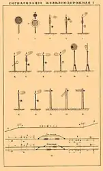 Сигнализация железнодорожная, иллюстрация из энциклопедического словаря Брокгауза и Ефрона (1890—1907).