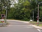 - Вторая категория. Переезды оборудованы двумя шлагбаумами в полширины дороги и светофорами. Во время опускания шлагбаума действует звуковой сигнал. В то время, когда переезд открыт для автомобилей, мигает лунно-белый фонарь светофора. Если того требуют особенности конкретного переезда, на нём могут быть установлены дополнительные короткие шлагбаумы для велосипедных дорожек и тротуаров. Переезды этой категории — самые распространённые в Бельгии. В 2005 году в стране было 1308 таких переездов.