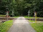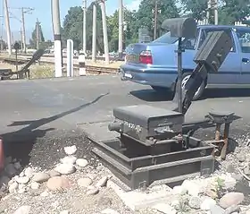В некоторых странах пересечение автодороги с выделенной трамвайной линией оборудуется точно так же, как и железнодорожный переезд.
