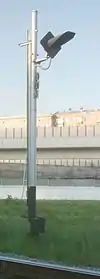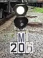 Маневровый светофор с включённым разрешающим маневровое движение лунно-белым сигналом