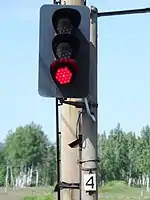 - Один жёлтый огонь — «Разрешается движение с готовностью остановиться; следующий светофор (маршрутный или выходной) закрыт».