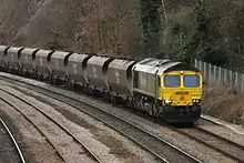 В 2002-2003 финансовый год было перевезено 87 миллионов тонн при 138 миллионах в 1986-7, упав на 37 % или 18,7 миллиардов тонн-километров против 16,6 млрд в 1986-7, рост на 13 %. На 2011 года железнодорожный транспорт занимал 11,5 % наземного грузового транспорта Великобритании.[11]
