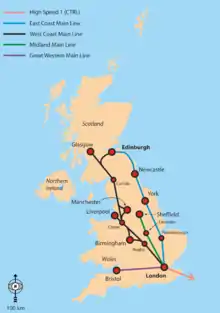 ![]() Карта железнодорожной сети Великобритании | |