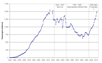 C 1994 по 1997 годы British Rail была приватизирована. Владение путями и инфраструктурой было передано Railtrack, а пассажирские перевозки выделены в отдельные франшизы и проданы частным операторам (первоначально было создано 25 франшиз), грузовые перевозки были разделены на 6 компаний и полностью проданы (стоит отметить, что 5 из 6 грузовых компаний в итоге были куплены одним и тем же новым владельцем). Правительство Джона Мейджора считало, что приватизации улучшит пассажирские перевозки. С тех пор уровень пассажиропотока постоянно рос высокими темпами.