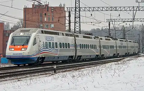 В 1950-х годах впервые в СССР прорабатывалась идея скоростного движения. Приказом министра Бещева от 29 мая 1957 года была разработана программа действий и определены технические меры для организации скоростного движения на Октябрьской железной дороге. В 1957 году работы перешли в практическую плоскость: была впервые в СССР достигнута скорость 134 км/ч, которую тепловоз ТЭ7-001 с грузовым поездом весом 1000 тонн развил на перегоне Покровка — Клин. В последующие годы тепловоз с грузовыми поездами весом 800—900 тонн достиг скорости 140 км/ч. В 1965 году состоялись опытные поездки фирменного поезда «Аврора», в ходе которых электровоз серии ЧС2 с составом преодолевал расстояние 650 км между Москвой и Ленинградом за 4 часа 59 минут с максимальной скоростью 160 км/ч. В 1970 году по поручению министра Бещева Конструкторское бюро авиационной техники А. С. Яковлева разработало, а Калининский вагоностроительный завод изготовил опытный экспериментальный скоростной вагон с авиационными реактивными двигателями. Спустя два года на Приднепровской дороге проведены динамические испытания состоящего из двух вагонов поезда массой 60 тонн, в ходе которых была достигнута скорость 249 км/ч. В 1970-х годах построены первые отечественные локомотивы, способные развивать скорость свыше 140 км/ч. Однако в итоге правительство СССР с учётом политической подоплёки (необходимости поддерживать экономику союзников по социалистическому лагерю) сделало выбор в пользу скоростных электровозов, произведённых в Чехословакии. Они и вели самые быстрые в СССР поезда между Москвой и Ленинградом, на некоторых участках экспрессы развивали скорость 160 км/ч. В 1984 году поезд ЭР200 преодолевал путь между Москвой и Ленинградом за 4 часа 30 минут; минимальное время в пути графикового поезда Сапсан с пассажирами в 2017 году составляет 3 ч 30 мин[45] с максимальной скоростью на небольшом участке 250 км/ч[46][43][47]. В ходе опытно-экспериментального безостановочного рейса «Сапсана» без пассажиров, с находившимися в кабине машиниста главными инженерами РЖД и МЖД В. Гапановичем и С. Вязанкиным в 2013 году была достигнута скорость на большей части маршрута 250 км/ч, а весь маршрут был преодолён за 3 часа без резерва времени. Минимальное время в пути между Москвой и Брестом (1100 км), достигнутое с этими же главными инженерами в кабине электровоза ЭП20 с экспериментальным поездом Talgo 250, составило 9 часов[48].