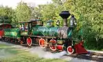 Бензиновый двигатель внутреннего сгорания | 610 мм (2 фута) | 31 июля 1955 года | - | Поезд оформлен в виде Кейси Джуниора — антропоморфного локомотива, персонажа диснеевского мультфильма Дамбо.[8] |