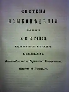 - Система языковедения / Соч. К.В.Л. Гейзе, изд. после его смерти Штейнталем, прив.-доц. Берл. ун-та; Пер. с нем. [авт. предисл.] И. Желтов. Ч. 1-2. — Воронеж: тип. В. Гольдштейна, 1864—1874.