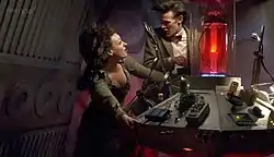 ![]() Идрис и Доктор пилотируют собранную ими консоль ТАРДИС | |