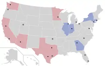Расположение команд WNBA      Западная конференция      Восточная конференция