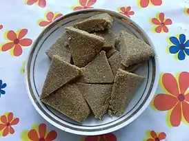 | Основные | пшеница, сухой толчёный творог, топлёное масло, сахар, мёд, изюм, орех |