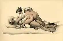 - При таком положении руки у мужчины свободны и, если женщина расположена к нему лицом, он может ласкать её грудь и клитор[4][5][6].