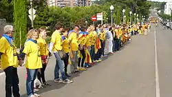 Длина цепи составила ок. 600 км. Акция повторялась с меньшим размахом ровно два года спустя | |