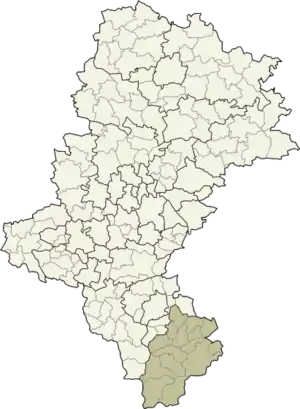 - сельские гмины: Гмина Чернихув, Гмина Гилёвице, Гмина Елесня, Гмина Кошарава, Гмина Липова, Гмина Ленкавица, Гмина Лодыговице, Гмина Милювка, Гмина Радзеховы-Вепш, Гмина Райча, Гмина Слемень, Гмина Свинна, Гмина Уйсолы, Гмина Венгерска-Гурка