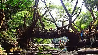 Живые корневые мосты распространены в районе города Черапунджи, штат Мегхалая на востоке Индии, и представляют собой один из древнейших примеров арбоархитектуры. Они традиционно создаются из воздушных корней каучуконосного фикуса народами кхаси и джантийа[1]. В XX веке, не теряя своего транспортного значения, эти подвесные мосты стали яркой достопримечательностью региона, неизменно привлекающей туристов.