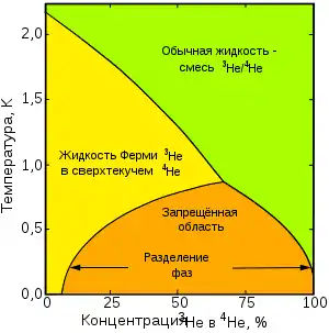 Аналогичная ситуация имеет место в жидком 3He, атомы которого имеют спин ½ и образуют типичную квантовую ферми-жидкость. Свойства жидкого гелия-3 можно описать как свойства газа квазичастиц-фермионов с эффективной массой примерно в 3 раза большей, чем масса атома 3He. Силы притяжения между квазичастицами в 3He очень малы, лишь при температурах порядка нескольких милликельвинов в 3He создаются условия для образования куперовских пар квазичастиц и возникновения сверхтекучести. Открытию сверхтекучести у 3He способствовало освоение эффективных методов получения низких температур — эффекта Померанчука и магнитного охлаждения. С их помощью удалось выяснить характерные особенности диаграммы состояния 3He при сверхнизких температурах.