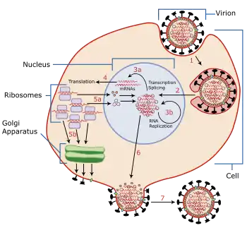 Таким образом, вирус целиком зависит от хозяйской клетки[1]. Большинство вирусов видоспецифичны и поражают лишь узкий ряд хозяев — растения, животных, грибов или бактерий.