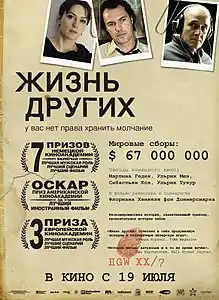 «Жизнь других» (нем. Das Leben der Anderen, англ. The Lives of Others) — немецкий драматический триллер 2006 года, дебют сценариста и режиссёра Флориана Хенкеля фон Доннерсмарка. Фильм рассказывает о тотальном контроле над культурной жизнью Восточного Берлина агентами министерства государственной безопасности ГДР (Штази).
