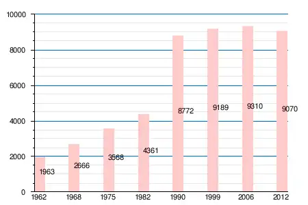 | 1962 | 1968 | 1975 | 1982 | 1990 | 1999 | 2004 | 2006 | 2009 | 2011 | 2012 |