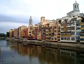 Главная улица старого города — Рамбла-де-ла-Льибертат (кат. (Rambla de la Llibertat) с застройкой XIX века, появившейся на месте разрушенной во время осады наполеоновскими войсками городской стены. Хорошо сохранившиеся фрагменты городской стены можно увидеть на Археологической улице (кат. Passeig Arqueologic); на той же улице стоит церковь Эсглесиа-де-Сант-Пере-де-Галлиганс (кат. Esglesia de Sant Pere de Galligants) XII века. В церкви, являющейся частью старинного бенедиктинского монастыря св. Петра, 4 апсиды и 3 нефа. Основанный в X веке монастырь св. Петра — одно из наиболее значительных сооружений романской архитектуры в Каталонии. На территории монастыря действует Музей археологии. Ещё одна древняя церковь, Эсглесиа-де-Сант-Фелиу (кат. Esglesia de Sant Feliu), возведена в XIV веке над могилами покровителей города, святых Нарцисса и Феликса. В стены апсиды рядом с алтарём церкви вмурованы плиты восьми саркофагов римского времени[5].